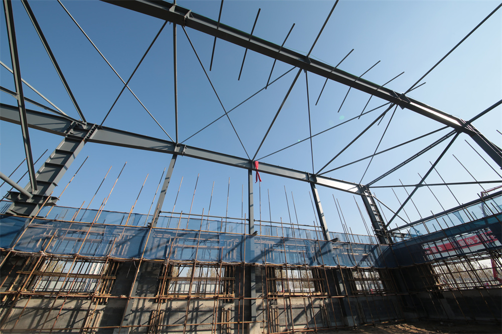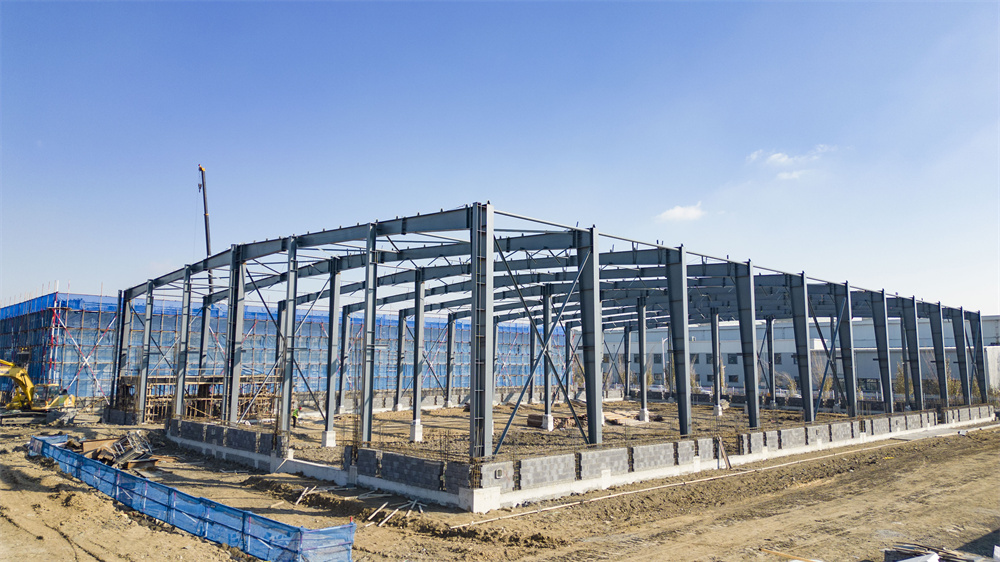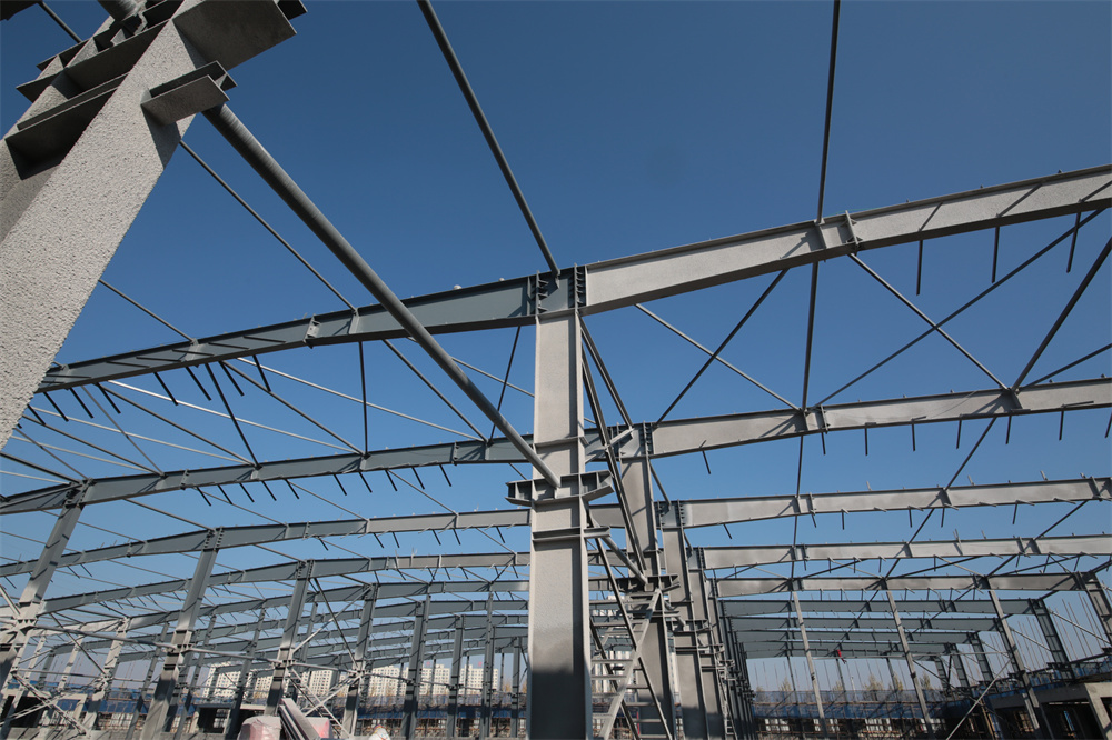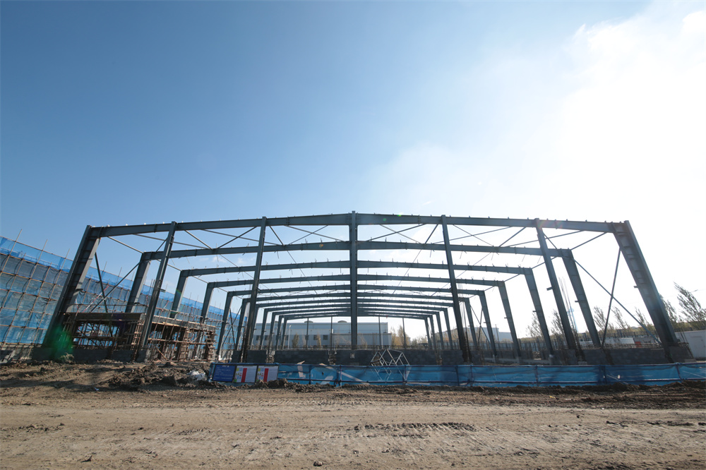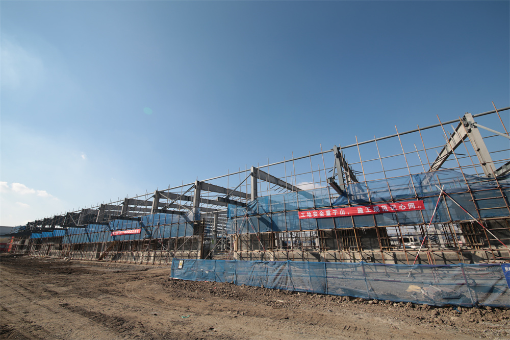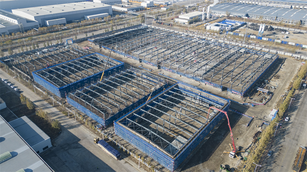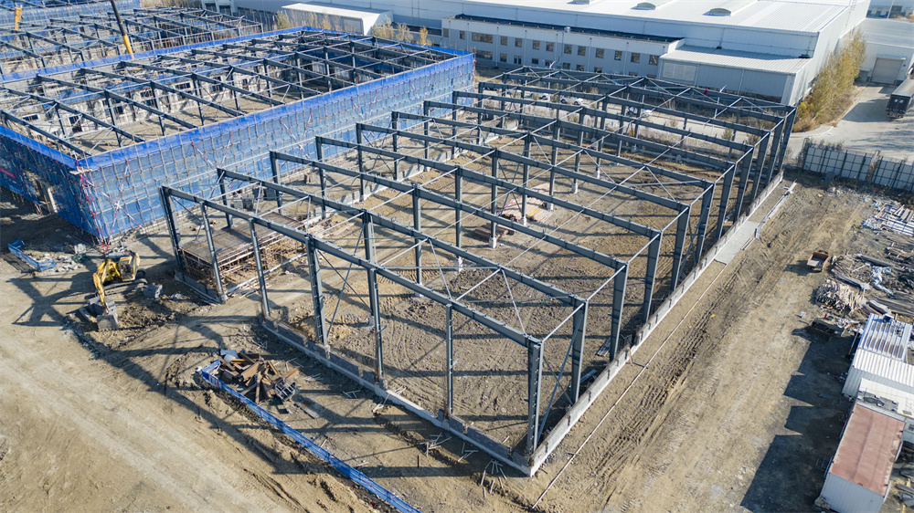 項(xiàng)目特點(diǎn):該項(xiàng)目共計(jì)分為5個(gè)單體,*大單體建筑面積為24772.11㎡。*大單體長度為207.6m、寬度108m、高度10.2m。*大單體共計(jì)布置16臺(tái)吊車,屋面設(shè)置多條電動(dòng)采光天窗。兩側(cè)縱墻分別縣挑5m寬雨棚,雨棚長度198m。該項(xiàng)目外墻均為土建外墻,鋼柱與士建外墻連接節(jié)點(diǎn)復(fù)雜,增加車間的制作難度。