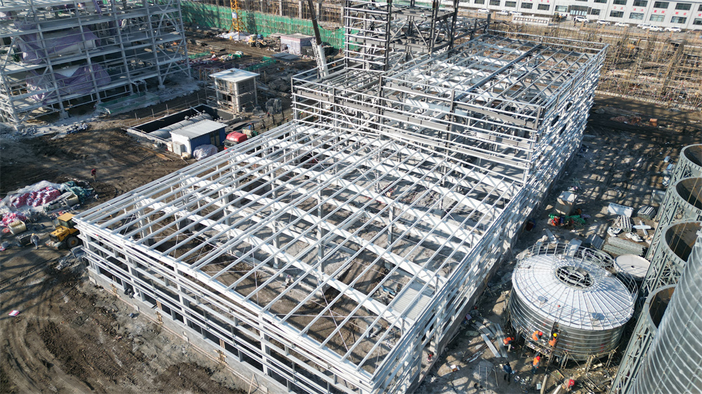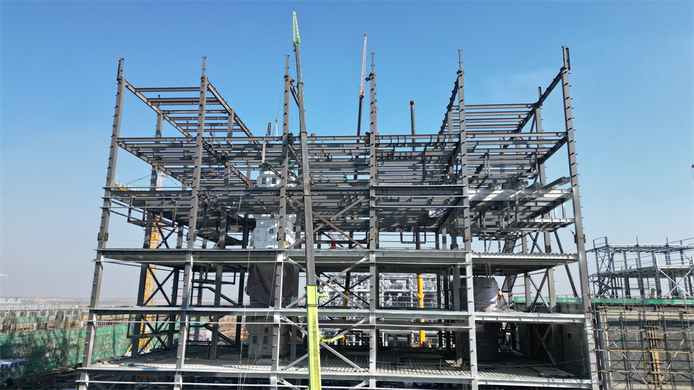 單體建筑面積:7624.37m,建筑高度31.72米,主體為7層結(jié)構(gòu),含鋼量近700噸,采用鋼框架,栓接結(jié)構(gòu),柱為箱型鋼柱,梁為H型鋼梁,每層平臺(tái)上設(shè)有多個(gè)設(shè)備洞口,里面設(shè)備多,加工工藝復(fù)雜,施工多專業(yè)交叉作業(yè),工期緊,需各專業(yè)高度配合,施工難度大,需打造成高難度、高精度、高標(biāo)準(zhǔn)工程。